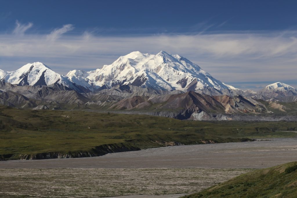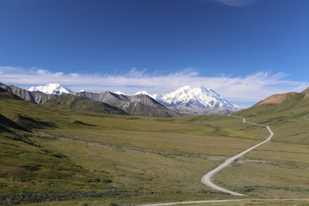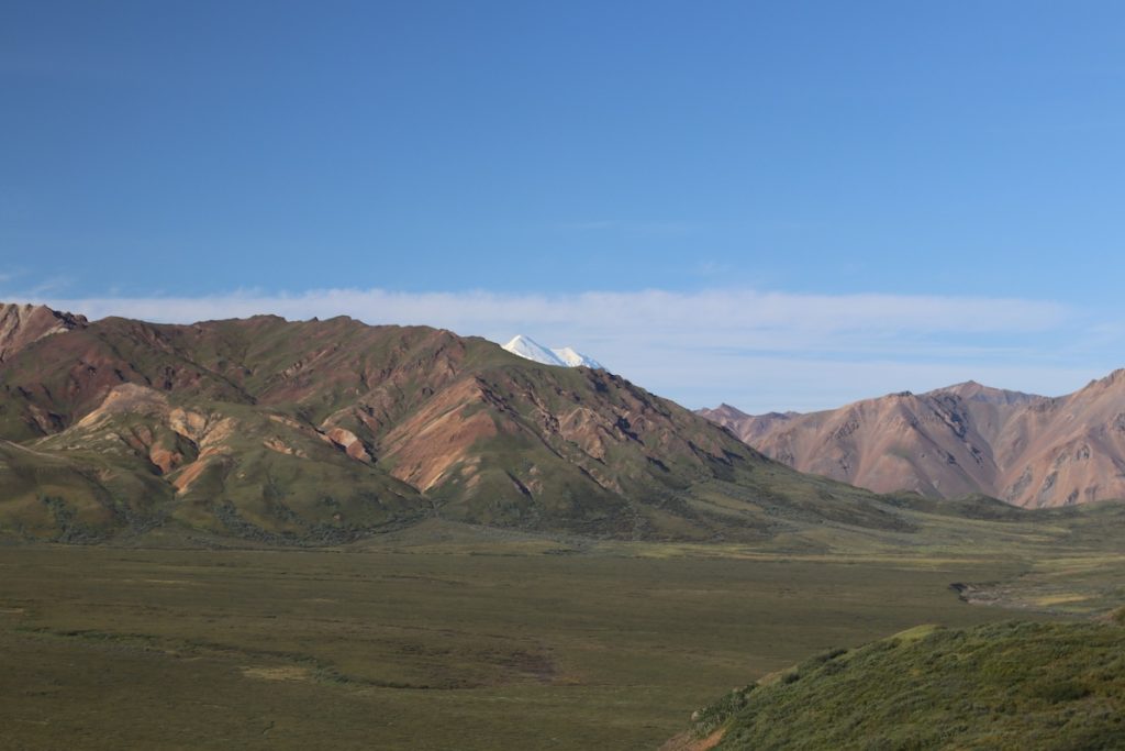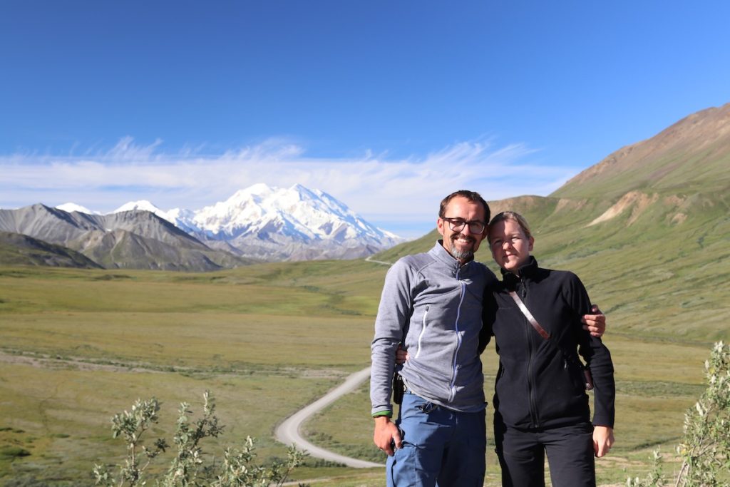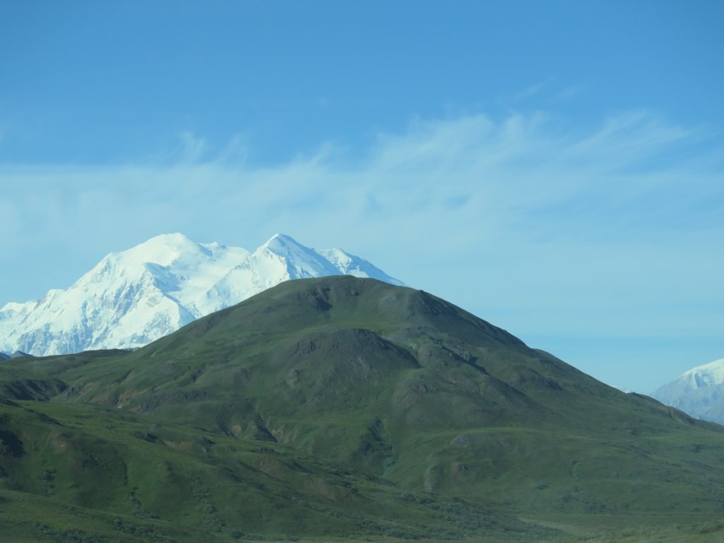 Plötzlich taucht vor uns der Mount Mc Kinley, oder wie er neu wieder heisst der Mount Denali.