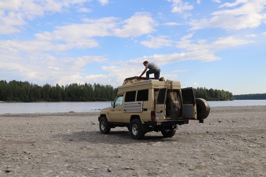 Und weiter geht es in Alaska. An einem schönen Fluss mit Steinstrand geniessen wir einen Nachmittag. Natürlich schlafen wir auch hier.