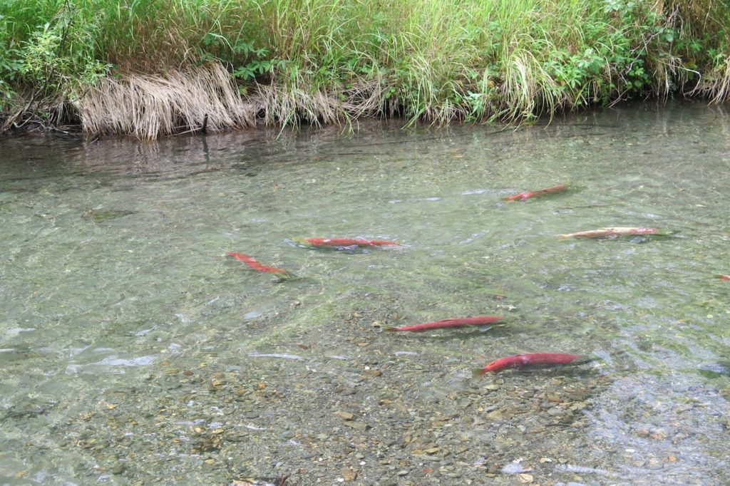 Richtung Anchorage kommen wir an einem Creek (Bach) vorbei wo nur so wimmelt von Lachsen