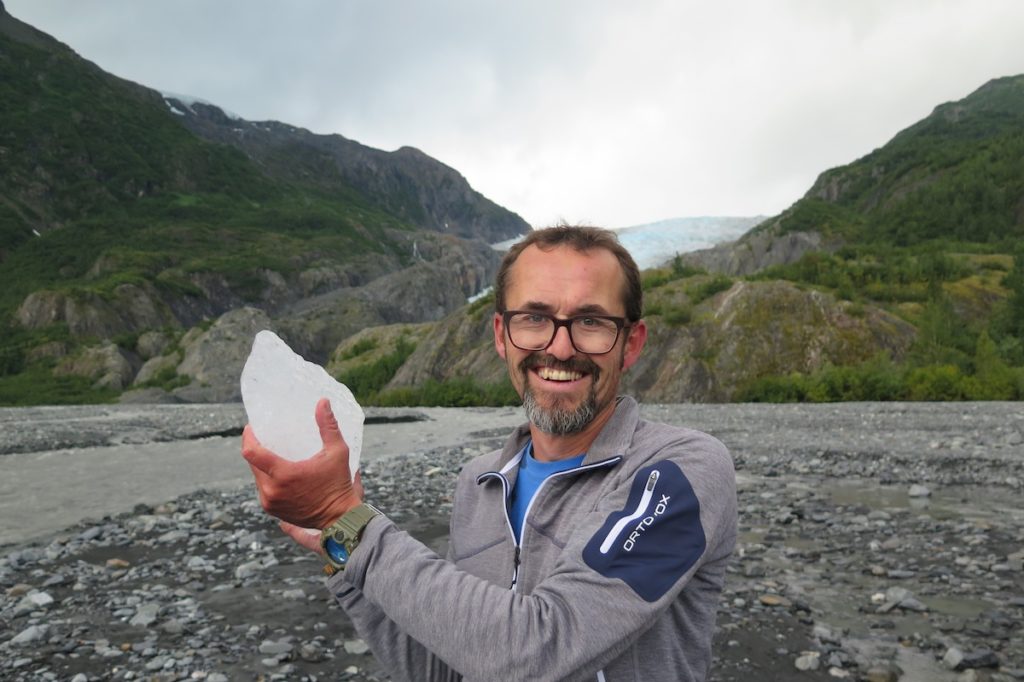 Am Fluss unten finden wir noch Stücke des Gletschers im Wasser.
