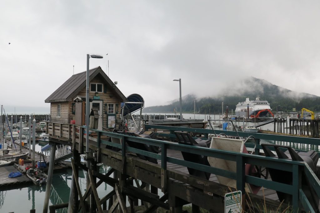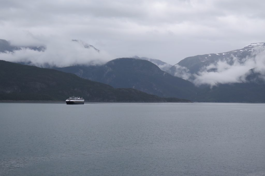 In Skagway hat es jeden Tag als wir da waren 3 Kreuzfahrtschiffe am Pier. Hier bei der Ankunft sieht man das sehr schön.