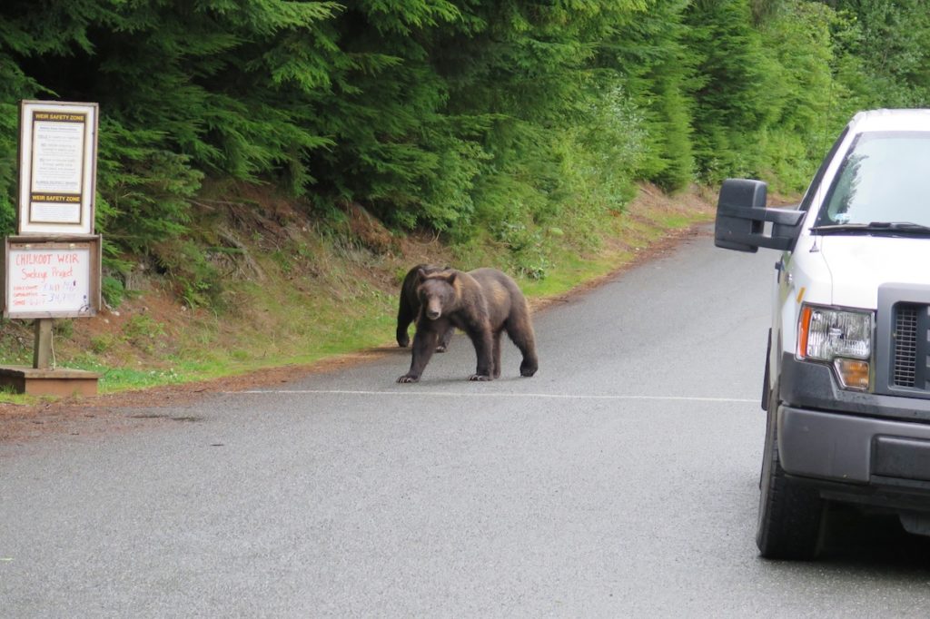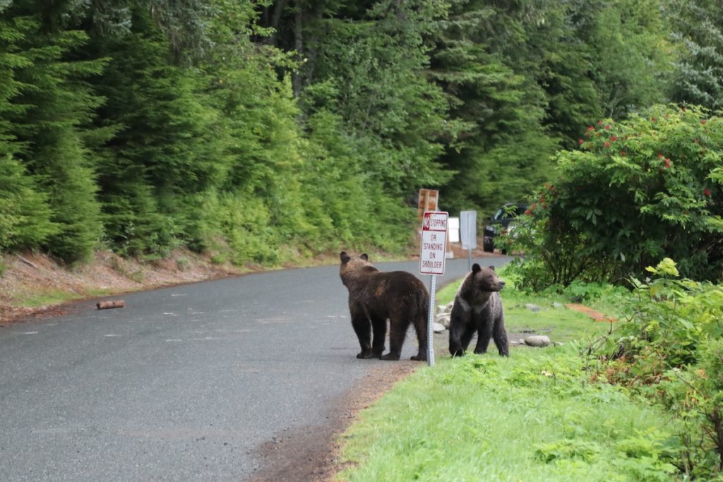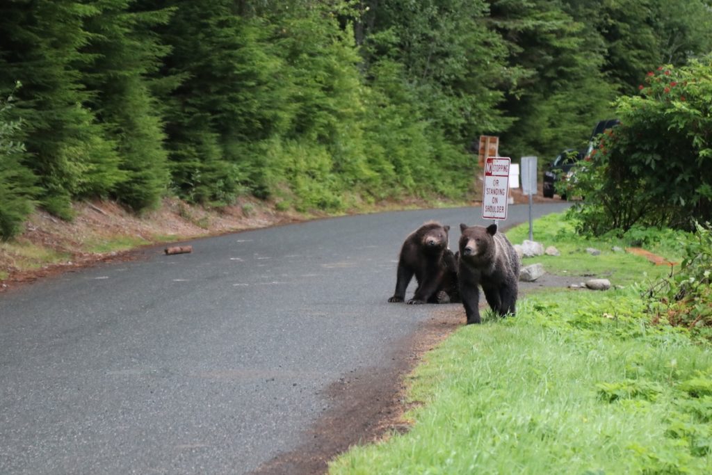 Hier soll es Bären geben. Wir gehen auf die Suche und finden 2 junge Grizzly’s die einigen Schabernack treiben.