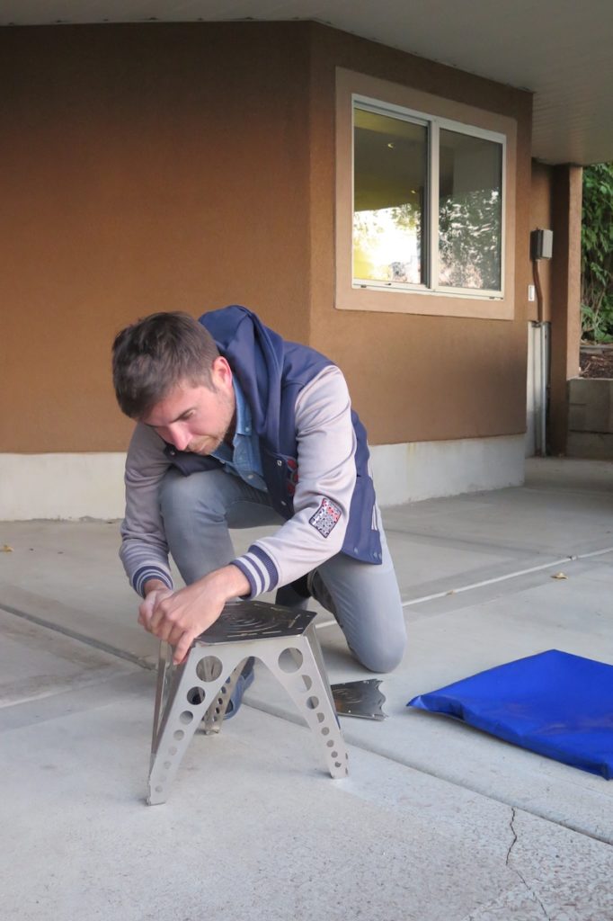 Freitag Abend ist grillen angesagt, und so wird unsere Feuerschale aufgestellt. Christoph erledigt dies sehr schnell.