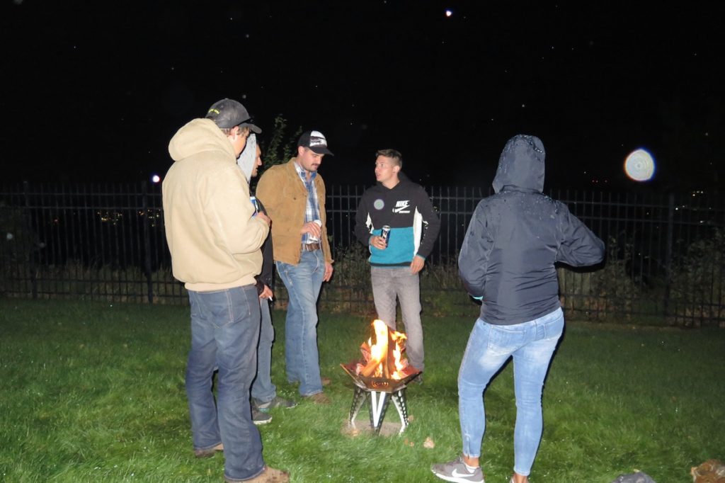 Trotz Kälte geniessen alle das Feuer draussen